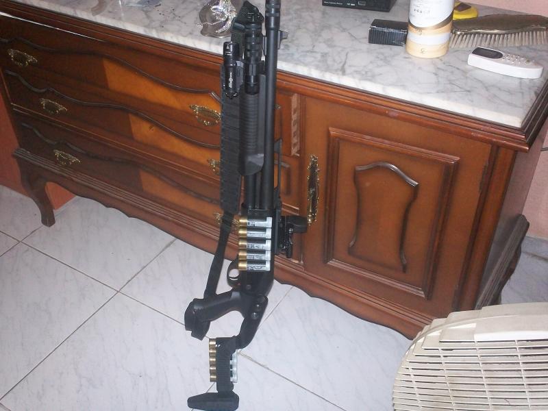 Si señor es una mossberg 500 de 8 cartuchos, y lo que asoma por el lado es un cetme c que es otra maquina.