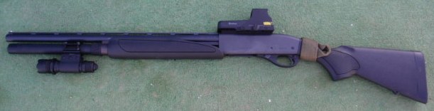 Se trata de una Reminton 870, aunque no sé seguro el modelo (ahí si alguien puede ayudarme le estaré agradecido), me vino con culata y guardamanos sinteticos, culata y guardamanos de madera y culata táctica con pistolet, a mí me gusta tal y como la he dejado. Yo le puse el portacartuchos, y tengo en mente una correa silenciada de 3 anclajes, pero ya para el sueldo del mes que viene. :caba: