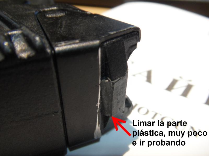 Sirio escribió:AJ_Sanchez escribió:Sirio escribió:Hola Sirio, al probar al meter el cargador con cartuchos si que me da problemas y cuesta bastante de meter, sin cartuchos entra a la primera, lo que has limado es la esquina posterior del cargador, es decir la que queda más cerca del gatillo ¿no?