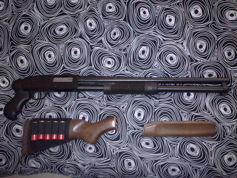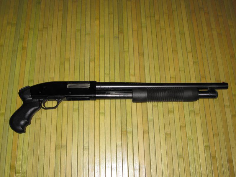 Esta es la mía, una mossberg 500A de 7+1, en la foto todavía no tiene puesto el tubo refrigerador, pero esta en camino.