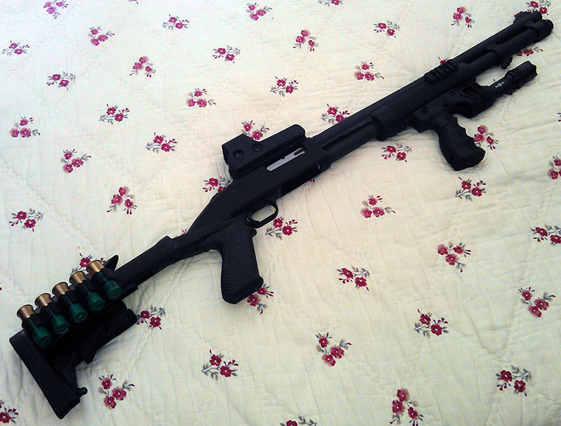 Aquí una foto de mi bicha, una Mossberg 590 algo tuneada: