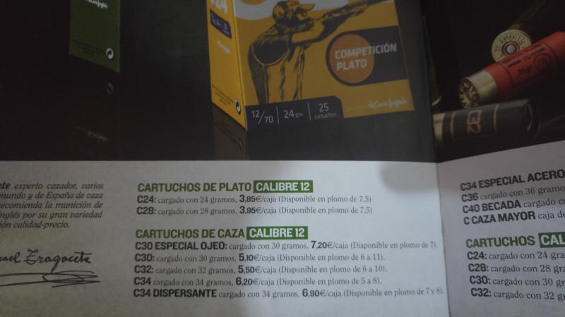Antes el C24 estaba a 3.85 la caja y el C28 estaba a 3.95 la caja. Precisamente uso estos cartuchos para tirar al plato desde hace 2 años. Adjunto foto de la revista del Corte Inglés que te dan en la sección de caza, es de a principios del 2016.