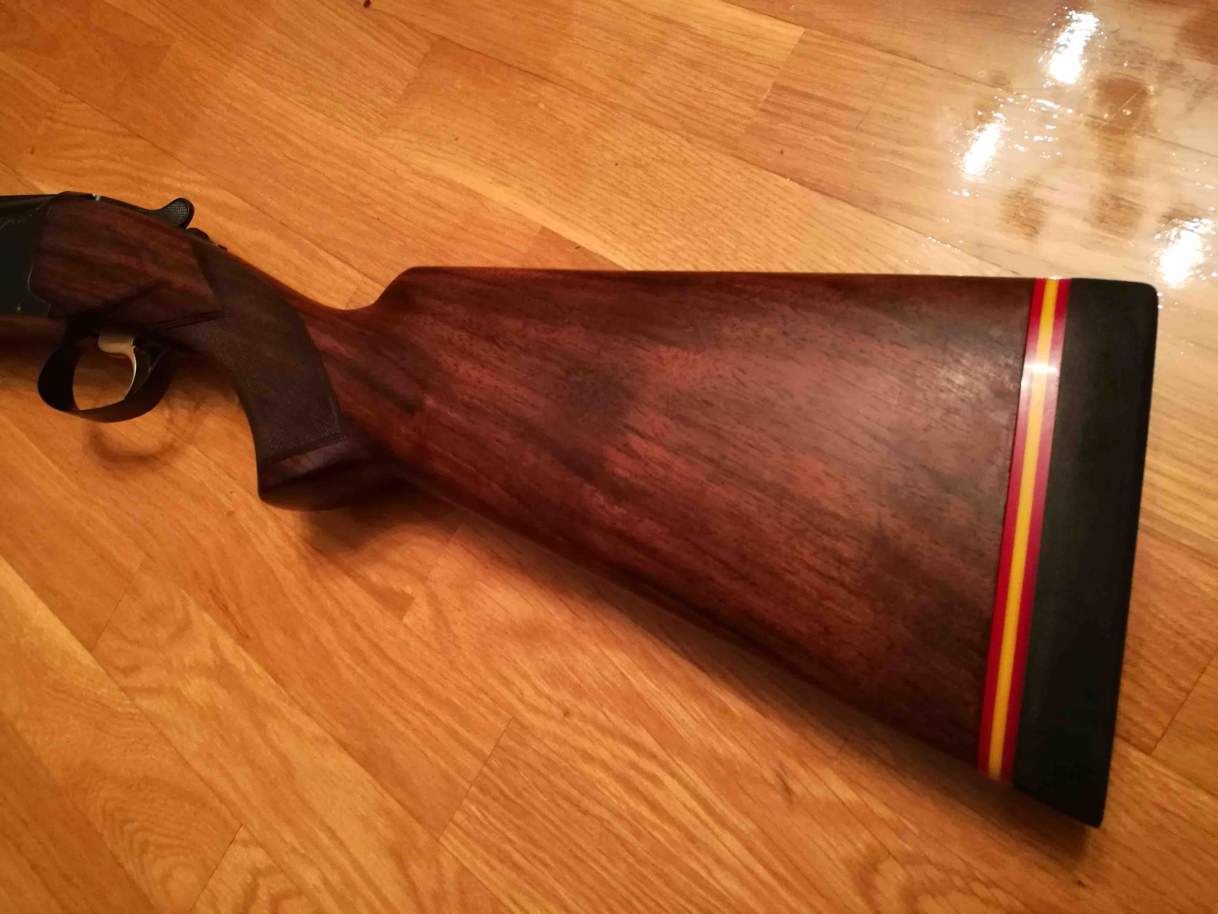 . Ya ves, yo no tengo inconveniente en que la gente ponga los colores de la bandera en la cantonera. De hecho, la otra B25 que vendí llevaba los colores de la bandera de Andalucía porque su anterior propietario era de allí y a mí me encantaba como le quedaban los colores verde y blanco a la escopeta. Ni se me pasó por la cabeza cambiarle la cantonera.