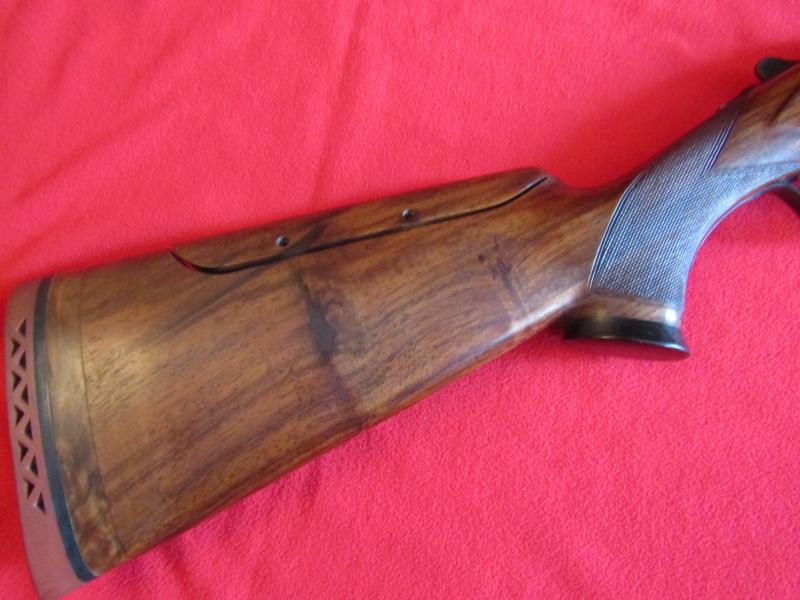 Bueno ahí van las fotos. Los retoques consistieron en una pieza de madera de raíz para alargar la culata, que me estaba corta, y una pieza de madera de ébano para rematar el pistolet y mejorar la empuñadura, aparte de embellecerlo estéticamente en mi opinión. Con esto, unido a la carrillera regulable que le puse la temporada anterior, doy por finalizados los ajustes en la culata, que ahora ya está completamente adaptada a mi ergonomía. Observad el fino trabajo que hizo el culatero, haciendo incluso coincidir en lo posible las vetas de la madera...