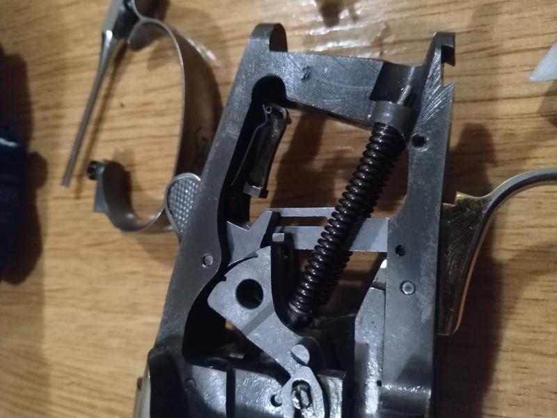 En cuanto a lo del segundo tiro y siendo inercial habría que probarla con munición real si lleva tiempo sin usarse. Con aliviamuelles, prueba después de tirar el primero a ponerle el seguro, cambiar el selector de tiro, quitarle el seguro y disparar. Si aún así no tira el segundo y limpia como se le ve de grasa antigua que pudiera agarrotarle el disparador, no me preocuparía demasiado hasta probarla con cartuchos de verdad. Piensa que en un inercial si no dispara el primero no monta el segundo. Yo tuve una Beretta 682 de las primeras que nunca disparaba el segundo con aliviamuelles y nunca me dio un problema en real. Lo que pasa que mucha gente se queda incómoda y quiere ver los dos disparados porque piensa que el muelle del segundo queda en tensión, pero no es así.