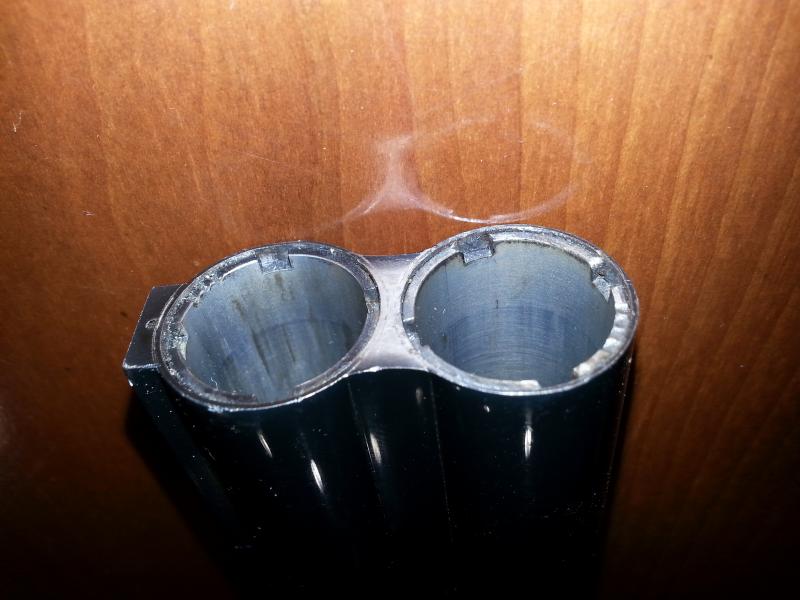 1º.- Super lamber. Cañones separados. El cañón de abajo es un poco mas corto. Lo iguala un polichoque que tiene y suplementa el trocito de cañón que falta. Es un polichoque número 5. En el cañón pone 1000 kp/cm.