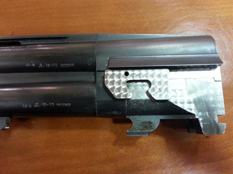 2º.- Winchester Classic Model 101 Trap. Lleva en los cañones dos polichoques interiores con números 5 y 6 estrellas. Los cañones están separados y ademas al final de los mismos están perforados. Me han dicho que esto es para que no se calienten los cañones al tirar muchos tiros (genial para el plato, supongo). En el cañón pone 18-6 (&, algo así, raro) y 12-70 1200kg.