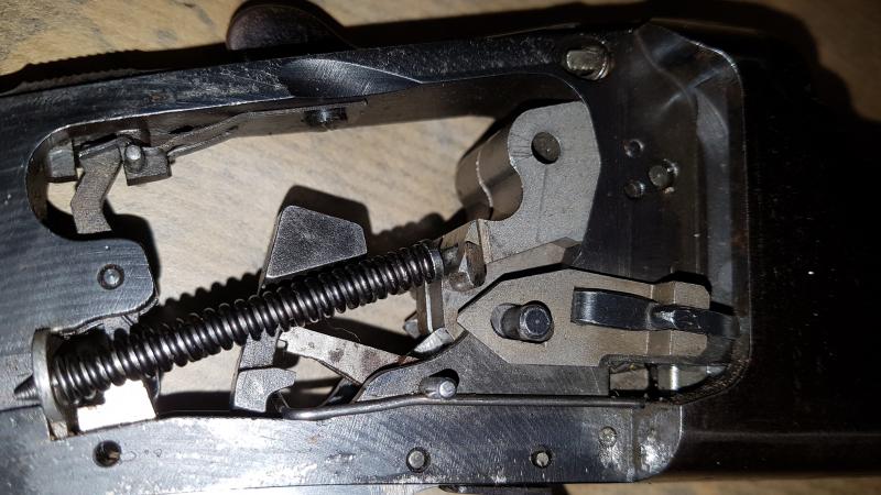 Amigo Monchi,me puse a desarmar una franchi dominator,hice lo mismo que tú abrirla por abajo.Problema no fui capaz de meter el muelle.