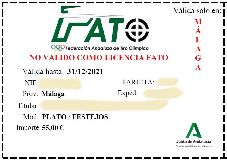 A demas pone no valida como FATO, o sea que no puedes competir, ni estas dentro de normas y seguridad de tu federacion, entonces para que te sirve?, solo para entrenar dentro de Malaga?, y sino estas acogido a la FATO, dicha trajeta incluye seguro de responsabilidad civil?.