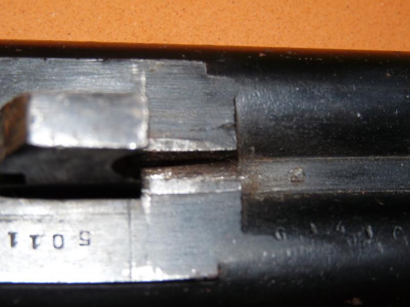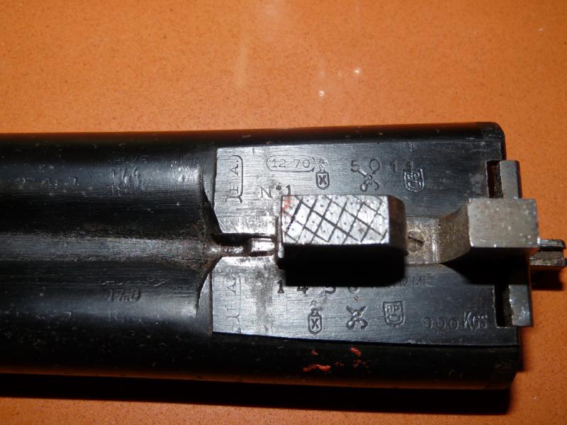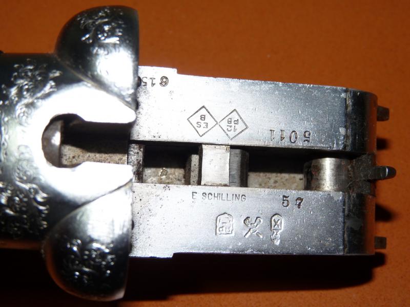 Ninguno de los 2 cañones son los originales de la escopeta, el que lleva marcas de prueba, estas corresponden a las del banco de Eibar y fué probado en 1968, muy posteriormente a la desaparición de la fábrica Jabalí a principios de los años 30. El numero de fabricación -5011- nos indica que la escopeta debió ser fabricada en el año 1900 y por su llave de apertura se corresponde con el modelo tipo Westley Richards que fabricaba Schilling. De ser todo original hubiera sido un modelo interesante, pero en su estado actual su valor es mas bien escaso.