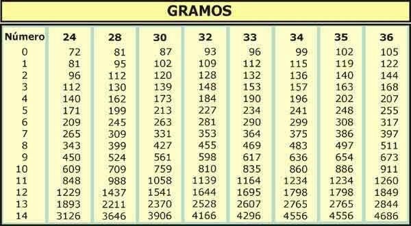 Por cierto. Os dejo una tabla con el número de perdigones que entran en cada número y peso de carga (por si puede ser de interés o utilidad).
