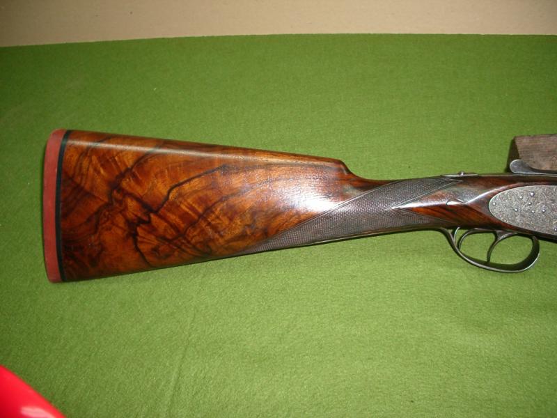 Aquí os presento una finísima AYA 53 de 1947 (los primeros años de la marca). Nº de serie 764. El grabado es un ejemplo de laboriosidad y delicadeza dificil de encontrar en escopetas actuales. Nada que ver con el modelo 53 posterior. Lleva la correa retractil oculta en la culata. Nada que envidiar a ninguna escopeta inglesa.