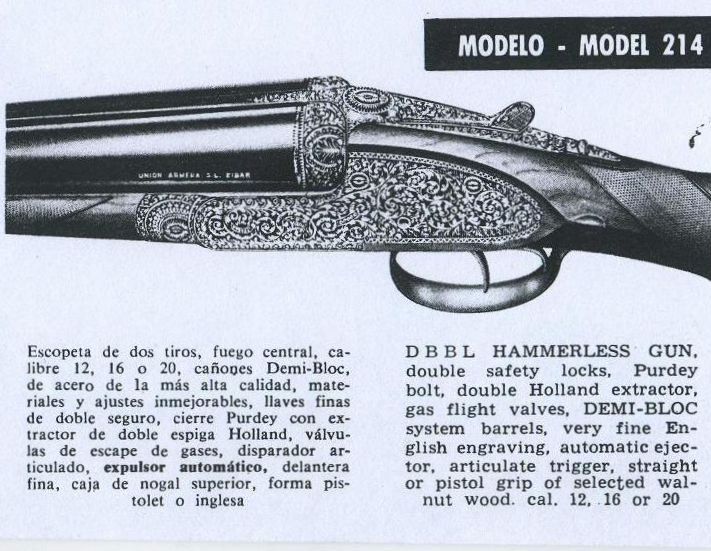 He intentado, en este y otros foros, conocer con fotos (o antigua publicidad o catálogos) todos los modelos antiguos de Unión Armera (actual Grulla), puesto que en muchas ocasiones "caen" en nuestras manos o nos pueda interesar alguna de estas escopetas, y sin embargo, no encuentro un lugar donde estén todos los modelos antiguos de escopetas de Union Armera.