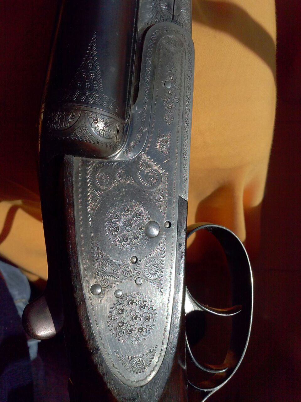 Es una escopeta de gama media. Materiales de calidad aceptable, sin ser extraordinarios, tanto metales como maderas. Los grabados mecánicos de rodana que cumplen el efecto ornamental y nada más. Si para tí tiene algún valor sentimental, seguramente será mayor que el real. Te adjunto una imagen para que veas la diferencia con un grabado a mano del mismo "rose scroll".