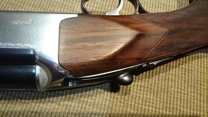 Os subo unas fotos de la zona de la rabera de la báscula de mi Aramberri Guernika. Como veis, el metal sobresale a la madera, cosa que siempre he relacionado con el excesivo lijado de la culata en esa zona. La escopeta es de segunda mano pero el vendedor me aseguró que estaba "nueva". Como una cosa es "nueva" y otra es "mal restaurada" conviene saber la verdad. Hasta ahora siempre he tenido más o menos claro que el metal sobresale por el lijado excesivo. El caso es que veo fotos de esa zona de otras Aramberri / Kromson que se venden y también parecen tener el mismo problema. Cuando pregunto a los vendedores, todos me dicen que "las maderas no se han tocado".