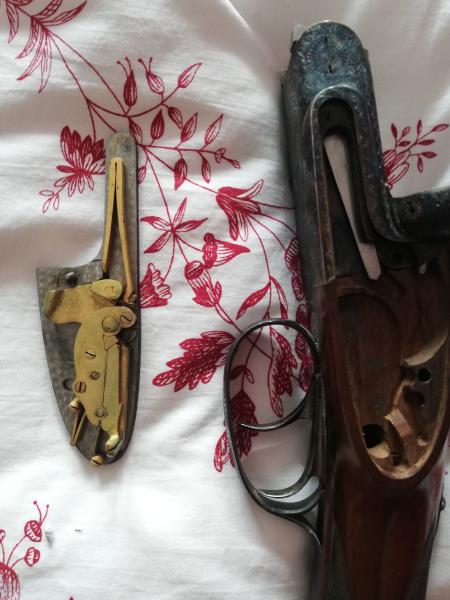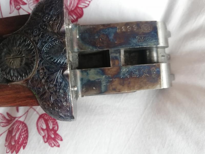 Bueno pues cañón derecho 10 décimas full y el izquierdo 13 décimas extra full. Longitud del cañón 67,5. Modelo creo que es el 126 con acabado dorado en las llaves. No está mal la escopetina por 86 euros en la subasta. Que cantonera le podrían ustedes.