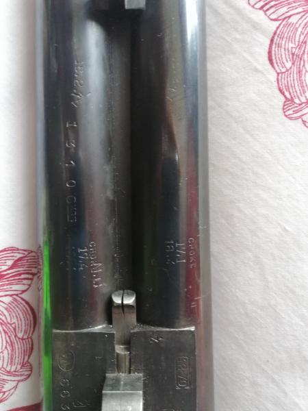 Si que es una escopeta "peculiar" lo que me hace pensar que fue hecha por encargo, con esa longitud de cañon y esos chokes tan cerrado (efectivamente 10 y 13 decimas) puede que fuera utilizada para la caza de patos, de todas maneras aunque esta fabricada en 1954 se ve perfecta y ademas unos grabados bonitos, no se decirte el modelo pero por lo que se ve en las fotos creo que es una gran escopeta que ademas esta como nueva.