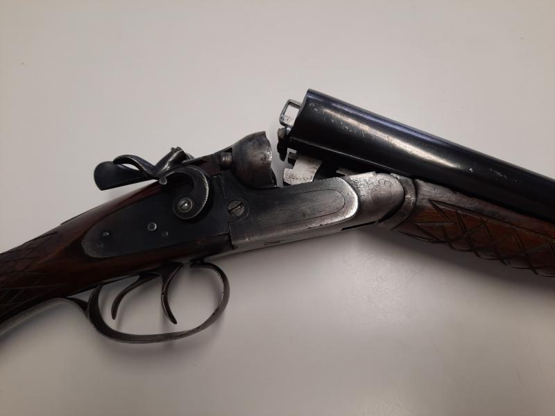 He recuperado una preciosa escopeta paralela de perrillos marca Julian Amuategui, destinada más a reliquia decorativa que no a la caza. Después de limpiarla a fondo, quería hacer algunos disparos, pero compañeros del tiro me han recomendado que busque cartuchos "del 50" ya que esta escopeta no está preparada para los actuales cartuchos.