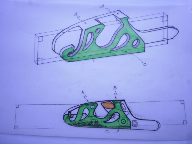 Estaba pensando que quiza sería divertido daros pequeños guiños del diseño final con pletinas enteras. En esta foto se puede ver la pletina del cañon superior. Os quiero hacer una pregunta para que tengáis que pensar un poco.
