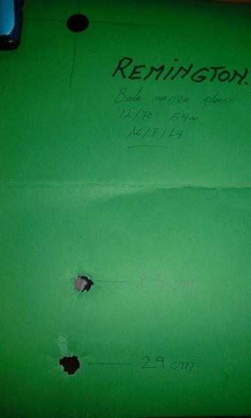 Por si le puede ser de interes a algun compañero. Con la escopeta se puede conseguir buenas agrupaciones siempre k dispongas de visor buen, apoyo y pruebes varias balas. Yo jamas pense k iba a conseguir una agrupacion con escopeta como la de la bala federal truball.