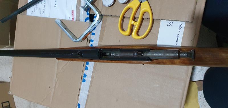 Es muy posible que se trate de una escopeta monotiro del anticuado, obsoleto, oscuro y olvidado cartucho de escopeta de 9 milímetros (9MM o 9 M/M). El Chimbo y Trusto hicieron bastantes de ellas. Si pudieras pasar fotos se agradecería, asi podríamos identificarla definitivamente. Tienes mas información en la pág 254 del hilo de recarga de escopeta. La mia es Trust y es así: