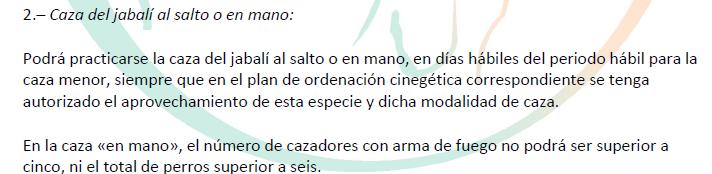 Ojo, sólo en Castilla y León hay unas 25 normas relativas a la caza, así que hay muchas cosas expresamente prohibidas que hay que buscar con lupa, pero tirarle a un jabalí en una mano de caza menor no lo prohibe en ningún sitio.