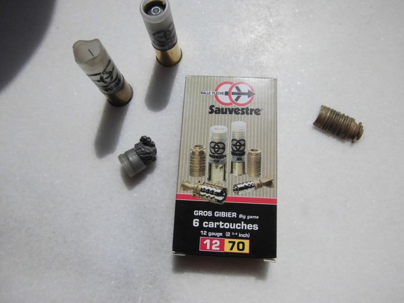 -Bala 12/70 con plomo, pero con una flecha creo que dice que mejorada segun su publicidad, pero da menos julios que la bala normal. https://www.sauvestre.com/Nouvel-article,1366?lang=fr