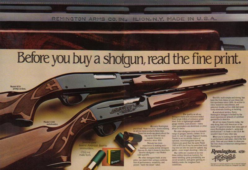 Esta mítica marca fundada en 1816 en Estados Unidos por Eliphalet Remington no ha tenido nunca una gran difusión en nuestro país así como en el continente Europeo en general a nivel de este tipo de escopetas, las razones de tal hecho son varias aunque la principal es que sus ventas siempre han sido muy importantes en todo el continente Americano, con lo cual, nuestro mercado, siempre ha sido una segunda opción para ellos ya que en muchos casos el gran éxito de sus productos en dicho continente ya absorbía su producción.