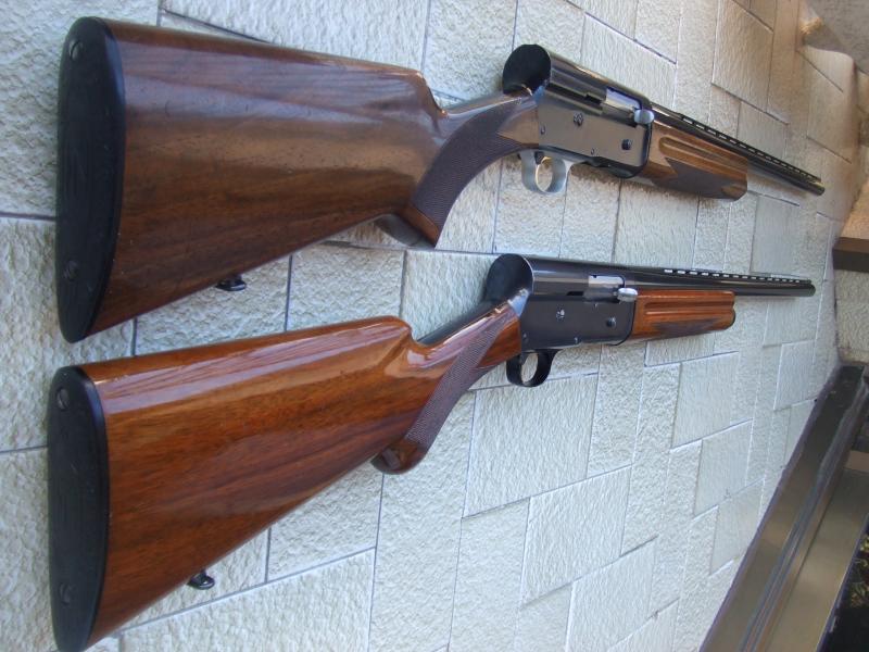 Hace ya muchos años tuve la suerte de ver y probar (la tenía un buen amigo mío) una escopeta "saut" japonesa de la marca K.F.C. Esta arma era la Auto-5 Browning pero retocada. Al principio del guardamano llevaba una pieza de metal en forma de "U" y dentro de éste una pieza de plástico a la altura donde vá el anillo soldado todo ello le permitía aguantar las embestidas del cañón cuando se producía el disparo, también llevaba un polichok exterior muy largo. Una cosa si digo, esta arma sobre todo en pavonados y estética de maderas era de menor calidad y más vasta que las belgas aunque de funcionamiento impecable. Por cierto que esa y otra que ví en un campo de tiro de Valencia son los dos únicos ejemplares que he visto en mi vida