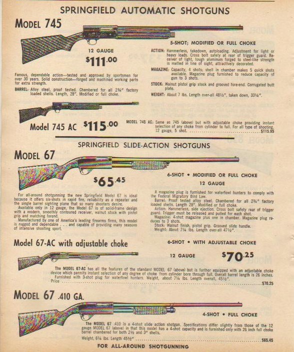 A principios de 1939 estas cifras de ventas decaen, estamos en la antesala de la 2ª guerra mundial, sin embargo la compañía Springfield Armory acuerda con la Savage Arms la producción de una escopeta tipo Auto-5 bajo el nombre de Springfield 745, esta escopeta será el escalafón más alto de las producidas por la compañía Savage y rivalizara con la propia Auto-5, su concepción a nivel de la máxima calidad de materiales así como un cajón de mecanismos de aleación de acero más ligero le supondrá un éxito de ventas que solo se verá trucado por el inicio de la guerra, pese a ello se calcula que se vendieron sobre 190.000 unidades entre los modelos 745 y745B, el modelo 745B es una evolución insignificante y fue la más vendida ya que se produjo al terminar la guerra.