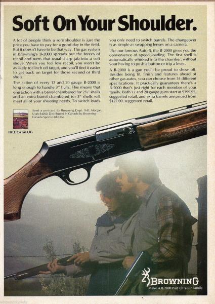 La B-2000 si que fue un intento serio de competir con la Remington 1100 y con la serie Beretta A-300 pero con un precio de salida mucho mas alto que estas y un sistema de gases de configuración interna mas caprichoso con la munición, amen, de una imagen catalogada como desfasada no consiguieron batirlas pese a ser una gran escopeta de gases.
