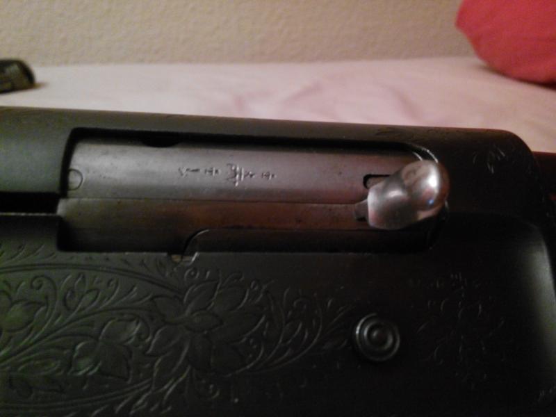 De todos modos tu Auto-5 está fabricada entre 1909 y 1923, hay varios datos que nos llevan a esta conclusión, aparte de las formas de las marcas y otros detalles menores, el tipo de seguro que se inicio en 1909 de la forma concreta que tiene la tuya y el tipo de gatillo que se modifico en 1923, son datos de peso.