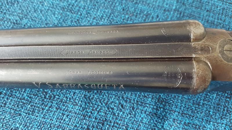 Hola estimados integrantes! Les escribo desde Argentina, he heredado esta hermosa escopeta de un abuelo, lamentablemente no tuve oportunidad de escuchar su historia porque era muy pequeño cuando falleció, pero lo interesante es la historia que me comentó un tío, es decir hijo de mi abuelo. La historia dice que esta escopeta fabricada en 1923 por Hijos de Calixto Arrizabalaga en la ciudad de Eibar fue un regalo para Victor Sarasqueta, el problema fue que el encargado de grabar el nombre de V Sarasqueta, cometió el grave error de hacerlo con doble R, lo que no sabemos es si descubrieron este error antes de obsequiarla, o lo hizo el propio Victor Sarasqueta.