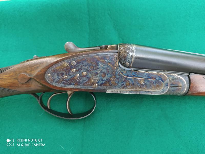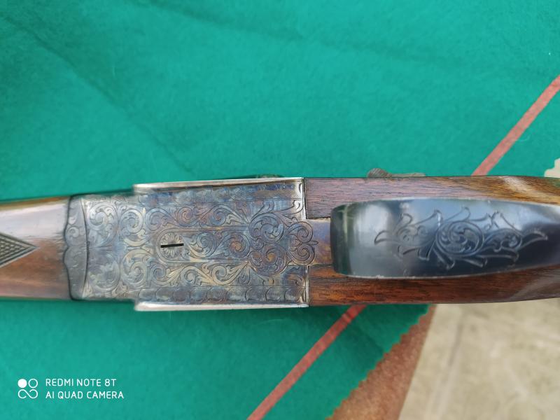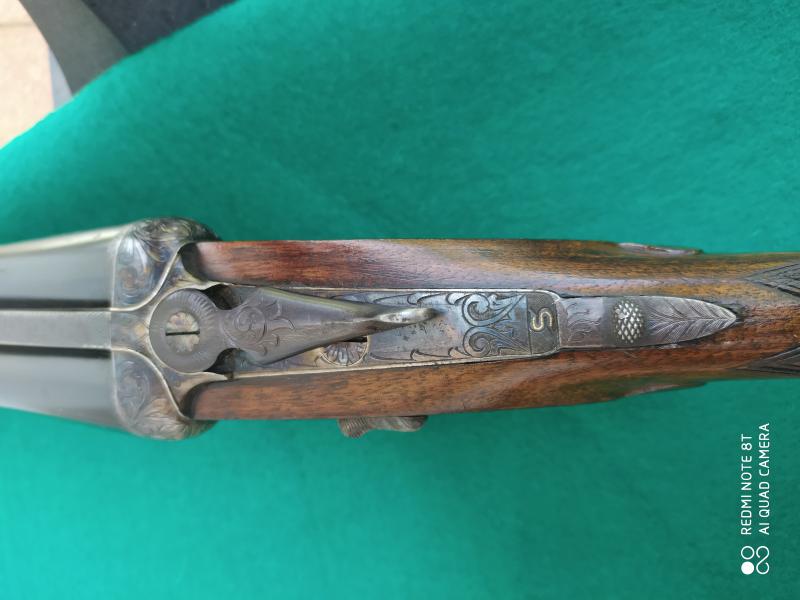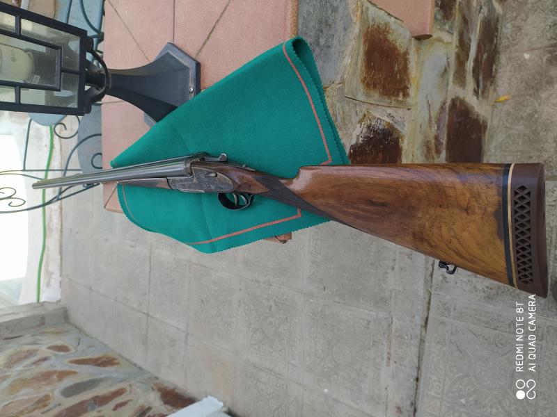 Buenas tardes, me gustaría saber vuestra opinión de esta paralela que os presento. Marca Fco. Larrarte de Éibar. Calibre 12. Me han dicho que por el punzón parece de 1930. Dos juegos de cañones (original picado en su interior y nuevo de 3 y 1* perfecto). Expulsora. Salida de gases. Grabados en relieve. Indicadores de carga. Culata inglesa (tiene el cuello reparado por una fisura en Éibar). Maderas restauradas al aceite. Muy equilibrada. ¿Qué precio tendría en vuestra opinión? Adjunto varias fotos en los siguientes mensajes.
