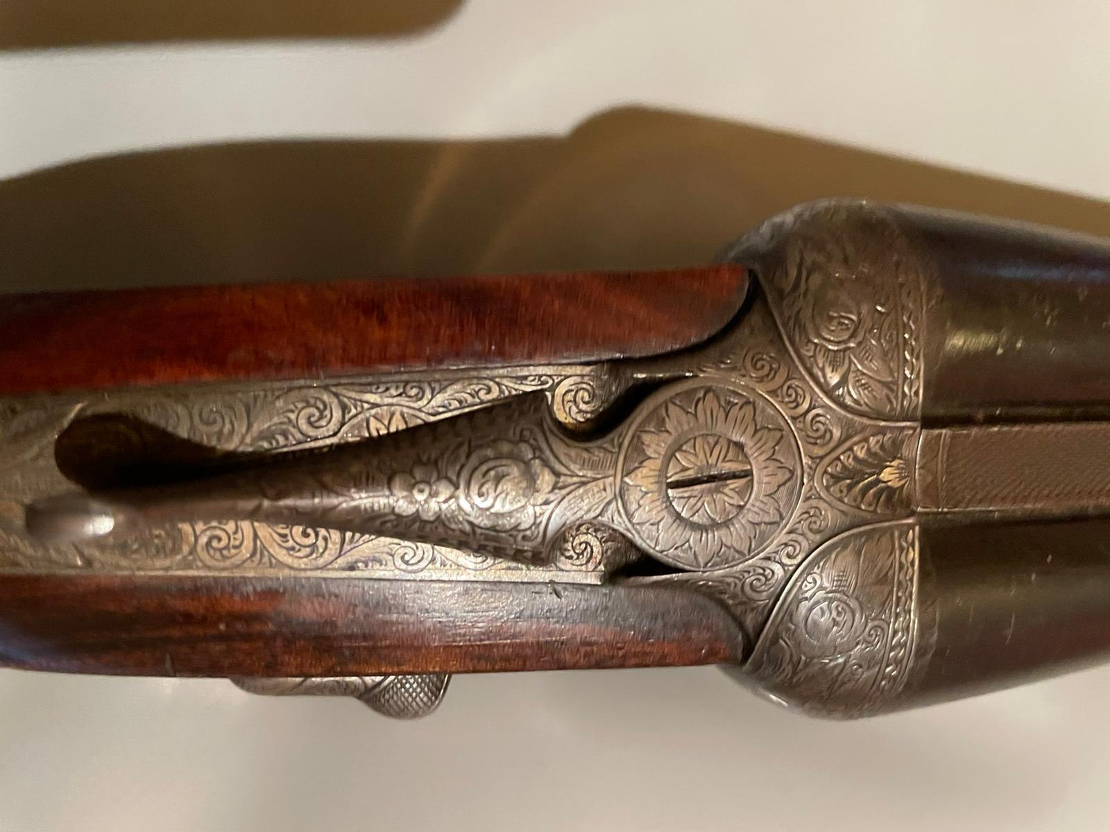 Una escopeta muy fina, los grabados tienen mucha calidad, que es precisamente en lo que destacaba Joaquín Fernández uno de los mejores grabadores que existió dentro del gremio, en la zona de Andalucía se veían bastantes de este armero, compre para un amigo una muy bonita también, pongo unas fotos de ella aunque no son muy buenas, las hice hace muchos años, es la segunda y la tercera, la primera pertenece a una de la colección de otro amigo una escopeta muy especial también.