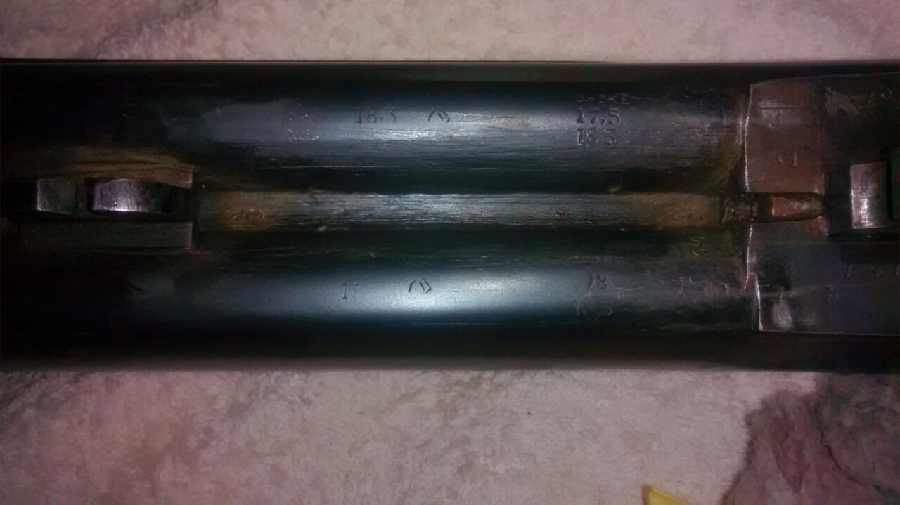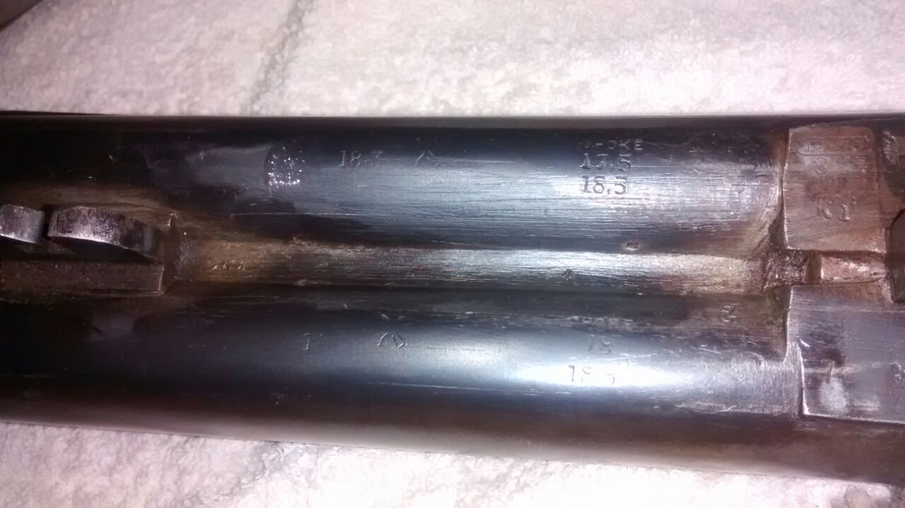 Hola compañero,los chokes son de 1(17,5) y 3(18) estrellas,aunque en el cañon derecho solo se ve un 18,que creo que sea el choke,y los números casi borrados de abajo sea el anima, y la escopeta es del año 1965 (K1)