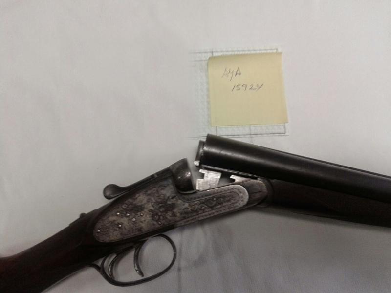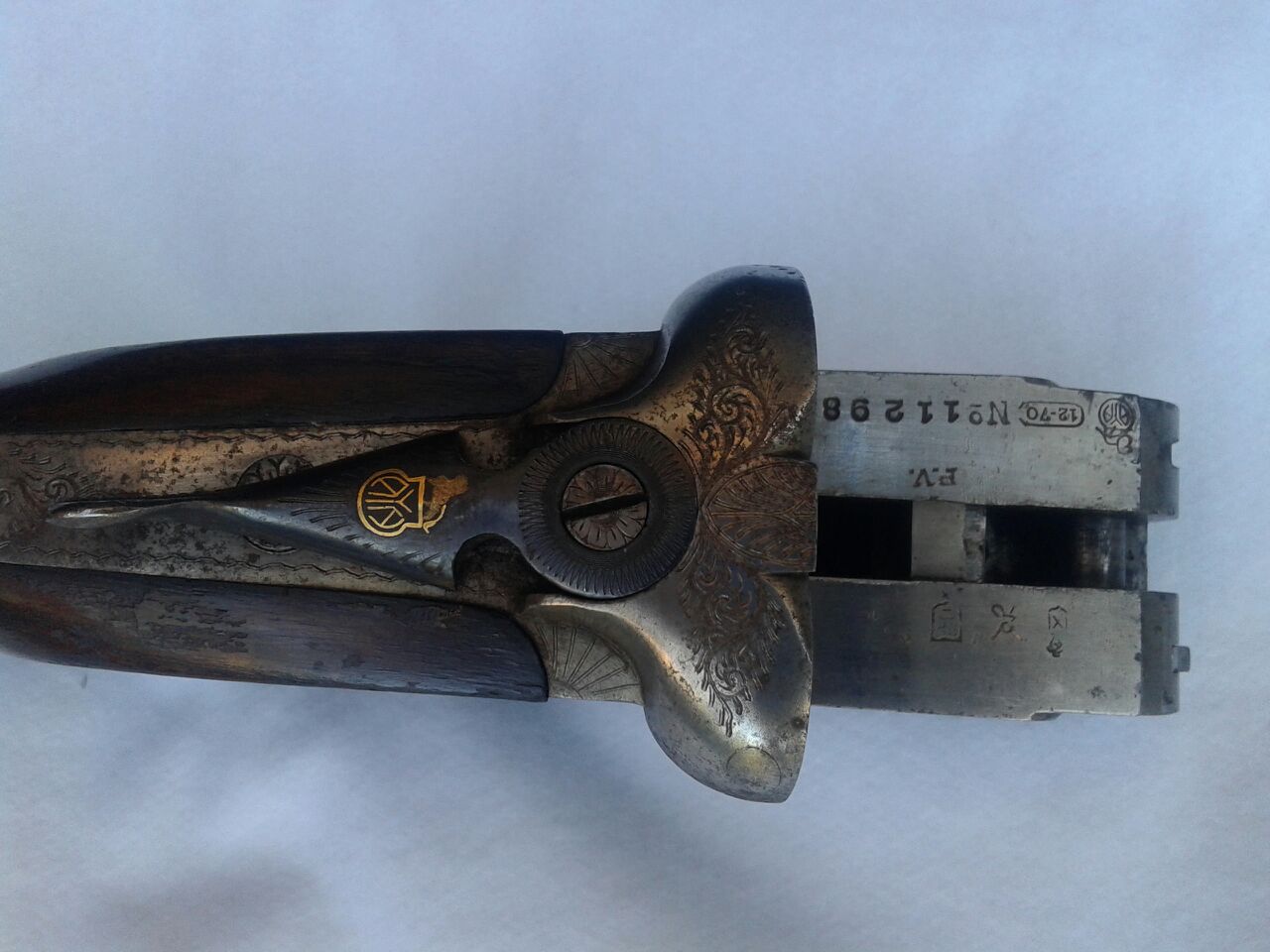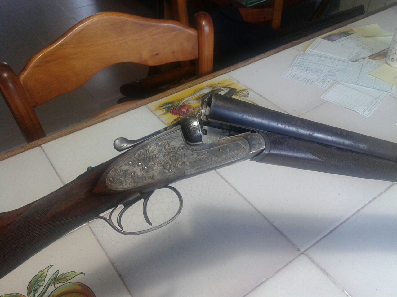 Hola a todos. Un amigo ha heredado unas escopetas y entre ellas hay una AYA de la que no sabe nada. Me ha pedido que si le podía buscar información sobre ella aquí en el foro, y es lo que intento. A ver si me podéis ayudar. Se trata de una paralela del calibre 12, pero lo que mas nos extraña son los grabados que tiene. Parecen grabados militares, escudo de la Legión y de la aviación (el propietario era de este último cuerpo). Las fotos no son muy buenas las típicas del whassap (no se si se escribe así), pero de todas formas os las muestro.
