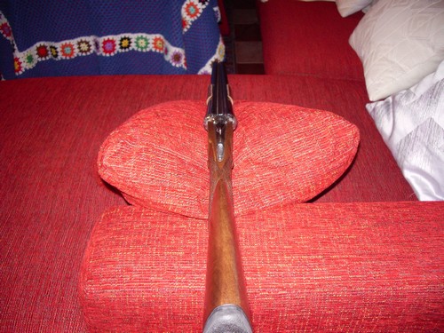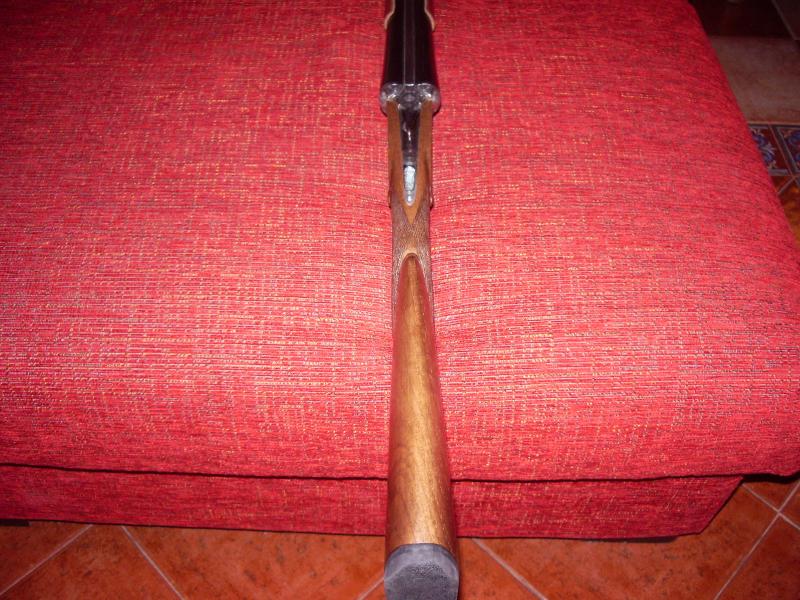 Las escopetas paralelas tipo Anmerles o de pletina entera tiene un punto flaco en la culata por donde casi todas se rompen se trata de la parte de arriba de la pletina que si es demasiado fina suele romperse, si te fijas veras que esa culata tiene la parte que rodea la pletinas mas gruesa que las de fabrica precisamente para darle mas fuerza a esa parte.