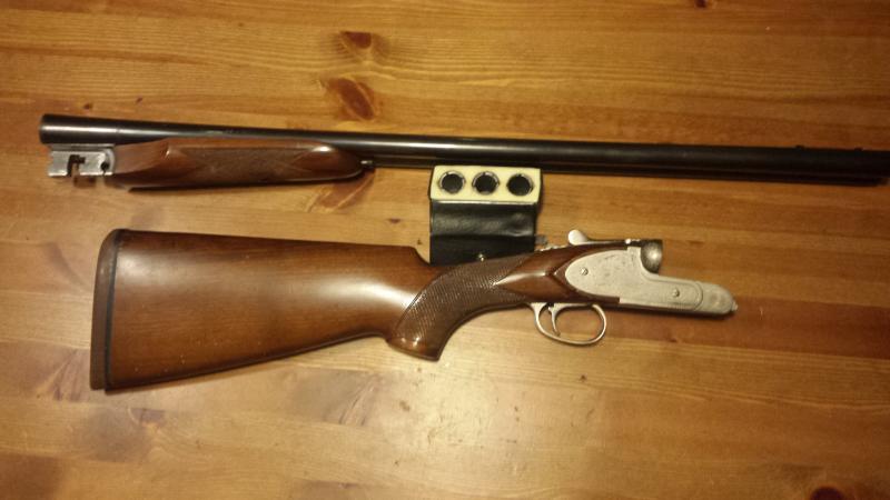 Escopeta yuxtapuesta (paralela), en perfecto estado de uso y conservación, 5 polichokes, monogatillo, selector de disparo en el seguro para disparar primero el cañón derecho o izquierdo segun se elija, expulsora. Pletina larga. Maderas de nogal. Guardamano cola de castor . Punto de mira largo de color rojo. Se encara de maravilla, excepcional para la caza del conejo! Muy polivalente. 490 €.