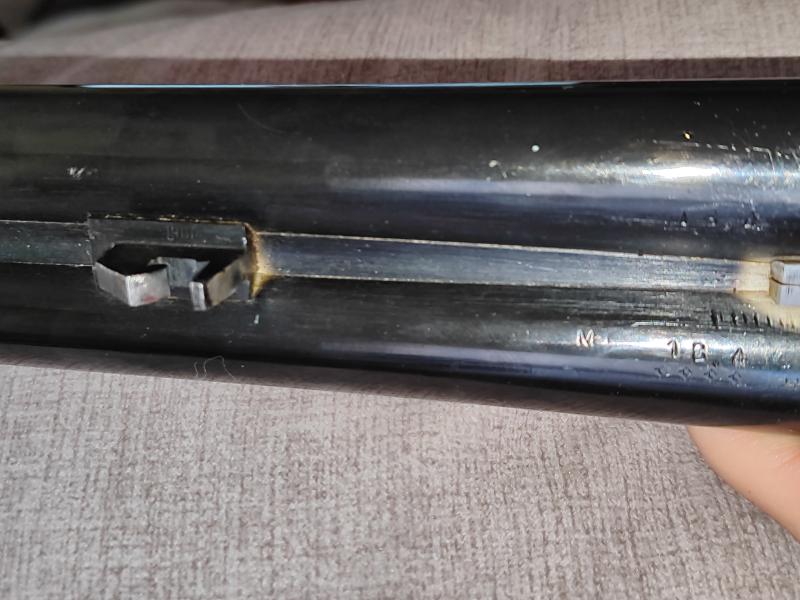 Creo que encontré la bendita letra, está en el cañón e igual se vea regular por lo que me comentabas del pulido en enjoyado. Veo una "M" clara pero no creo que sea tan antigua la escopeta no? La "M" según lo que me enviaste corresponde a 1941.