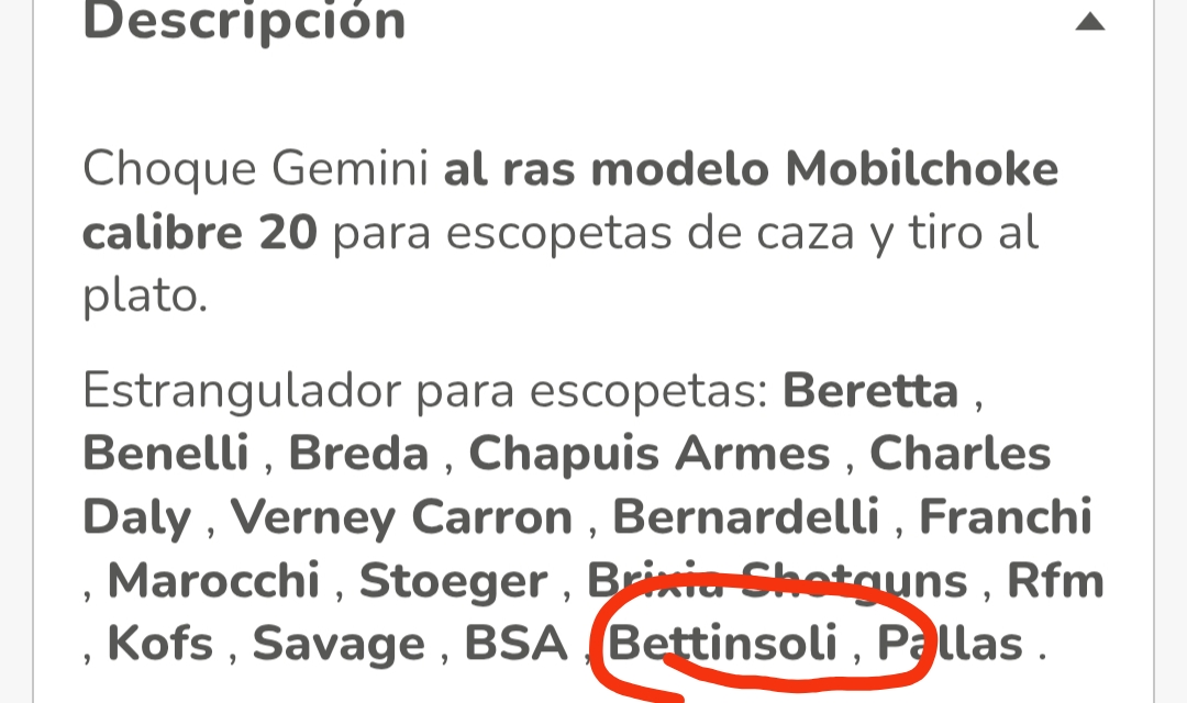 colito escribió:30cero6 escribió:Mira en la web de Gemini chokes. Busca por marca de arma, tipo de choke y calibre, es muy intuitiva la web. Si lo fabrican será fácil hacerse con ellos.