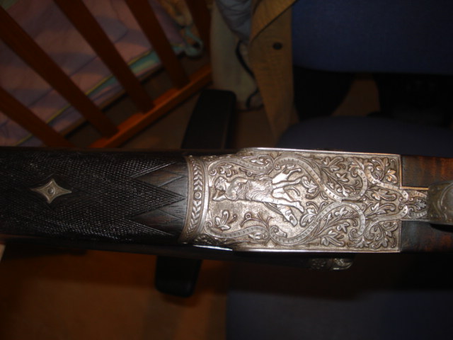 Ha llegado a mis manos un arma impresionante con raiz de nogal negro, cañones withworth, triple cierre, expulsora, caja de mecanismos perfectamente trabajada y pulida la madera y grabados en relieve impresionantes (a mano) es una obra de arte.