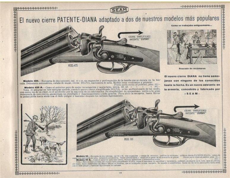 Tengo una escopeta paralela de perrillos marca seam, que tiene el cierre llamado PATENTE-DIANA, este cierre no es como los convencionales de las paralelas de mover hacia un lado para abrir el arma si no hay que tirar hacia atrás de la llave para abrir el arma.
