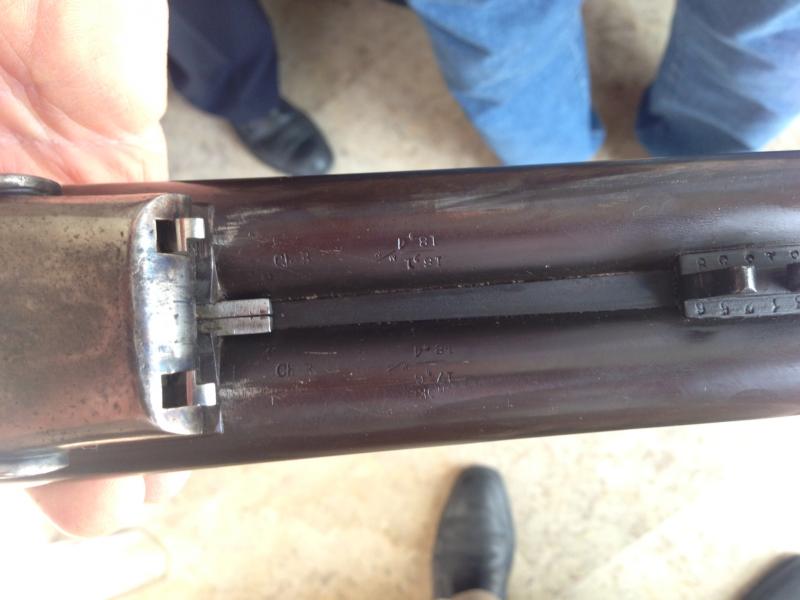 Si no es mucho pedir, podría hacer una foto de los cañones por la parte inferior, donde están las marcas del banco de pruebas. Es decir donde se ponen en contacto con el guardamanos y báscula.