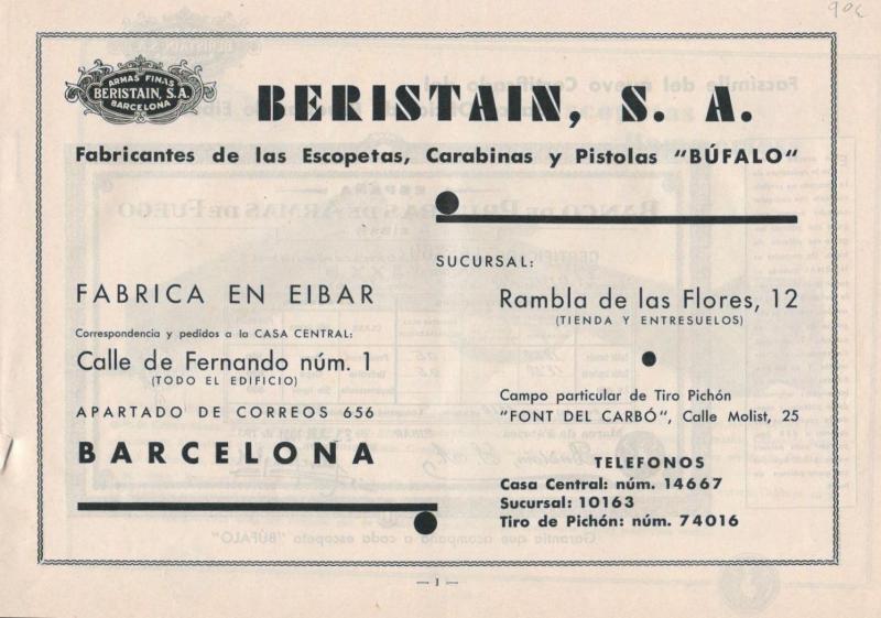 Esto ya se va calentando.....la foto del catalogo que nos adjunta el compañero es de 1910, que es cuando se creo la comercial en Barcelona y pasa de ser ¨Beristain e Hijo¨ a ¨Beristain & cia¨ que suministraba armamento deportivo.....