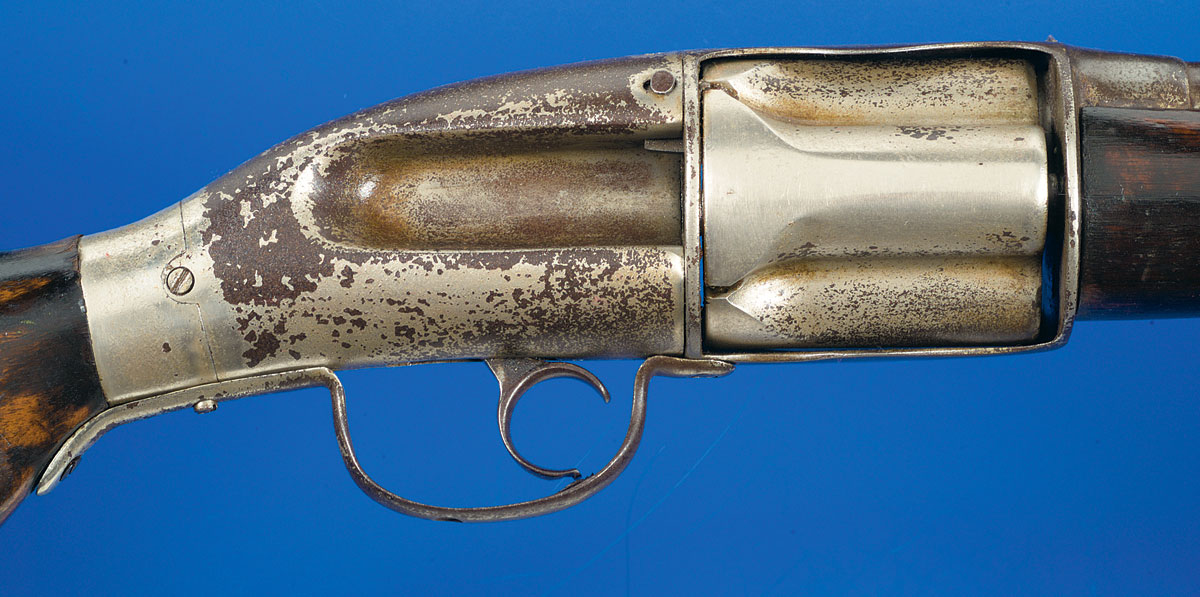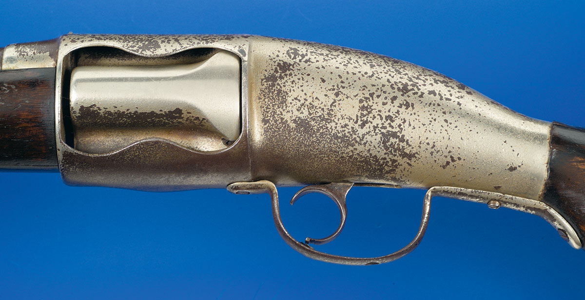 Pero no acabo de ver cómo gira el revólver en la escopeta.