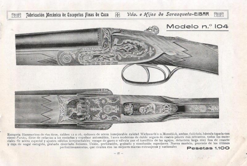 Aquí teneis una Vda. de Sarasqueta de los años '20, de cuando Aguirre y Aranzabal aún usaban pantalón corto. Es una escopeta que alguien rechazaría?. Quien disponía en aquella época de los 220 duros que costaba?