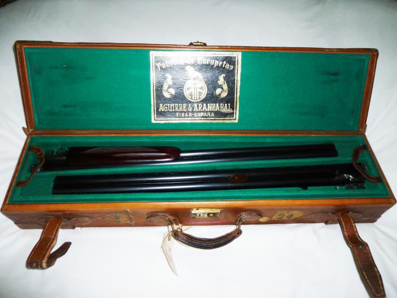 Es una AYA superpuesta en maleta de cuero con dos juegos de cañones.