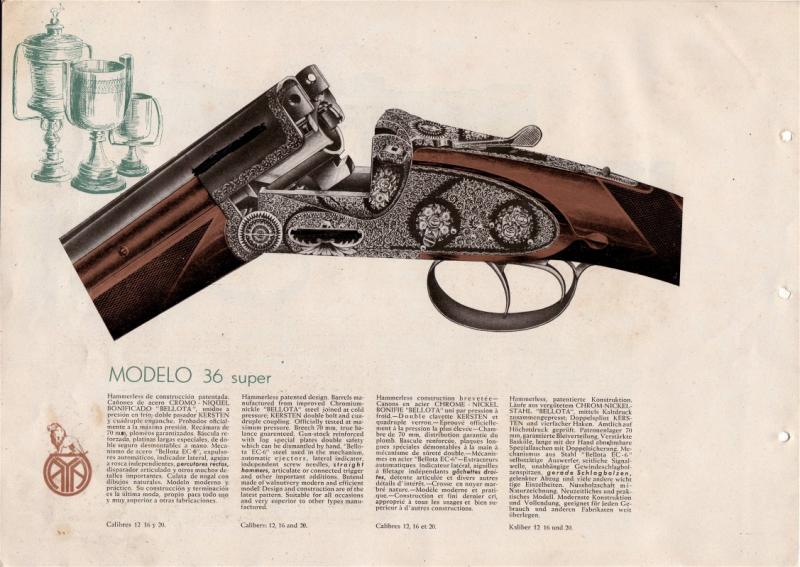 De qué año es? En los catálogos antiguos, las imágenes de las escopeta descritas son dibujos que pueden dar lugar a confusiones. Ocurre lo mismo respecto al mod. 37 de los años '70 en que variando solamente el grabado, en uno de los modelos representados se aprecian los dos enganches inferiores y en el otro, solamente uno. Otros modelos de similares características se hicieron en los '40 con la denominación de mod. 35 y 36.