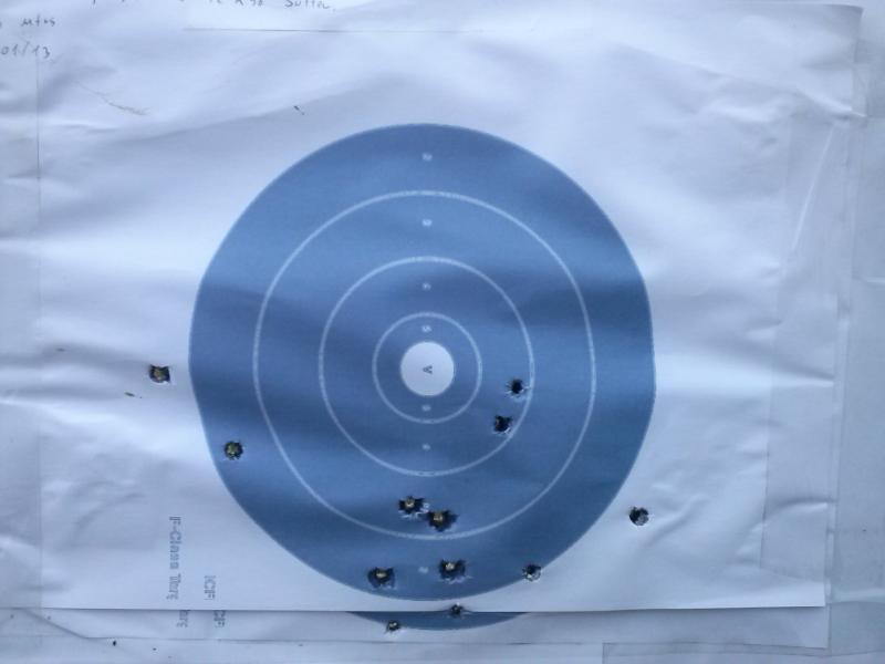 Aqui dejo unas fotos de este finde, que he tenido la oportunidad de tirar en unos de esos sitios que puedes poner el blanco a la distancia que quieras... esta vez, 200 mtrs con mi carl gustav y este es el resultado. el blanco es del tamaño de un folio y los 7 tiros de abajo son los ultimos. un saludo y a ver si alguien mas aporta fotos de sus juguetes!